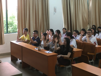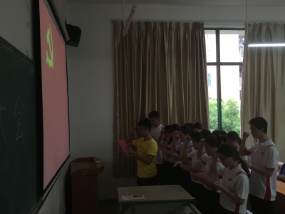 大会伊始,主持人据到场党员情况宣布会议有效,全体到场人员起立,奏唱国际歌。本次大会采取举手投票的方式产生工作人员:黄雪凤同志为监票人,刘振燕同志为计票人。随后,13名发展对象依次宣读入党申请书,表达了他们入党的愿望,在场的党支部成员分别对发展对象进行讨论发言,既肯定了他们的成绩,也指出缺点和不足。接着,有投票权的党员对13位同志进行举手表决,13名通表对象均全票通过。最后,国贸系14、15级党支部余泳书记宣读了支部大会通过接收何宗杰、曾晓虹等十三名同志为中共预备党员的决议,并带领他们宣读入党誓词。