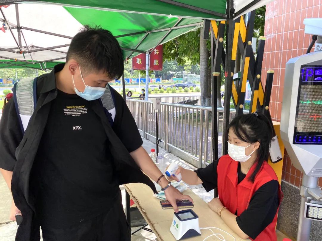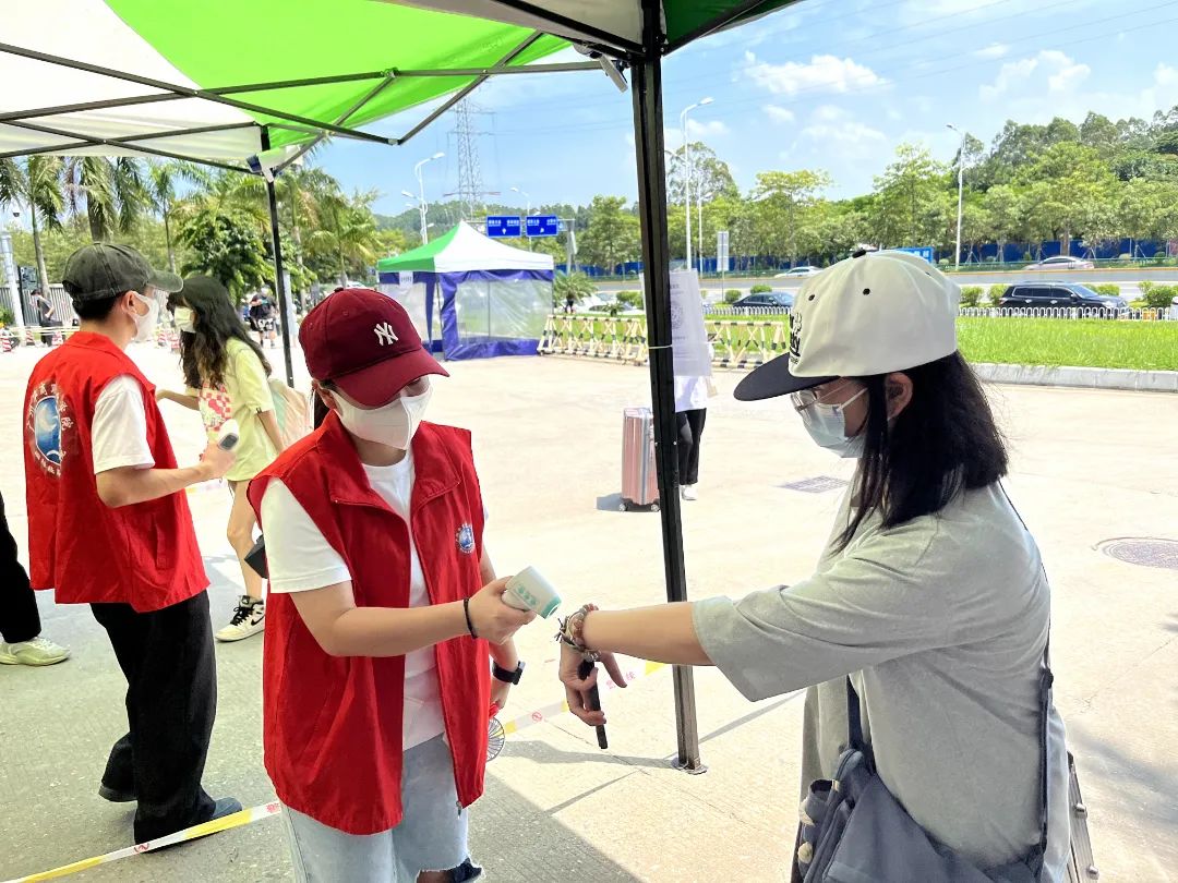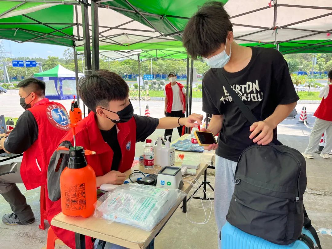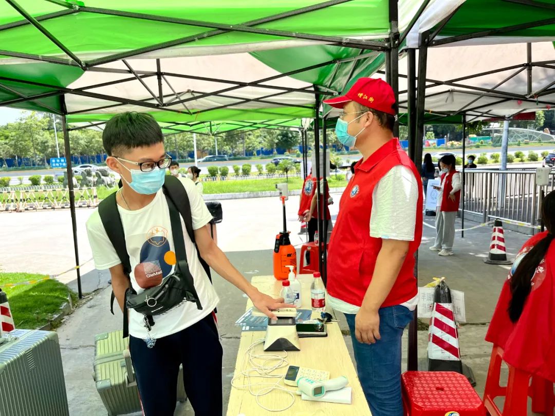 志愿者们细心引导同学们做好个人防护
