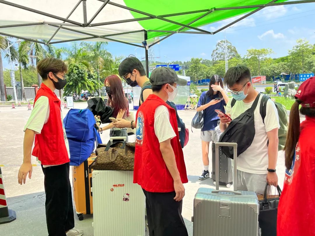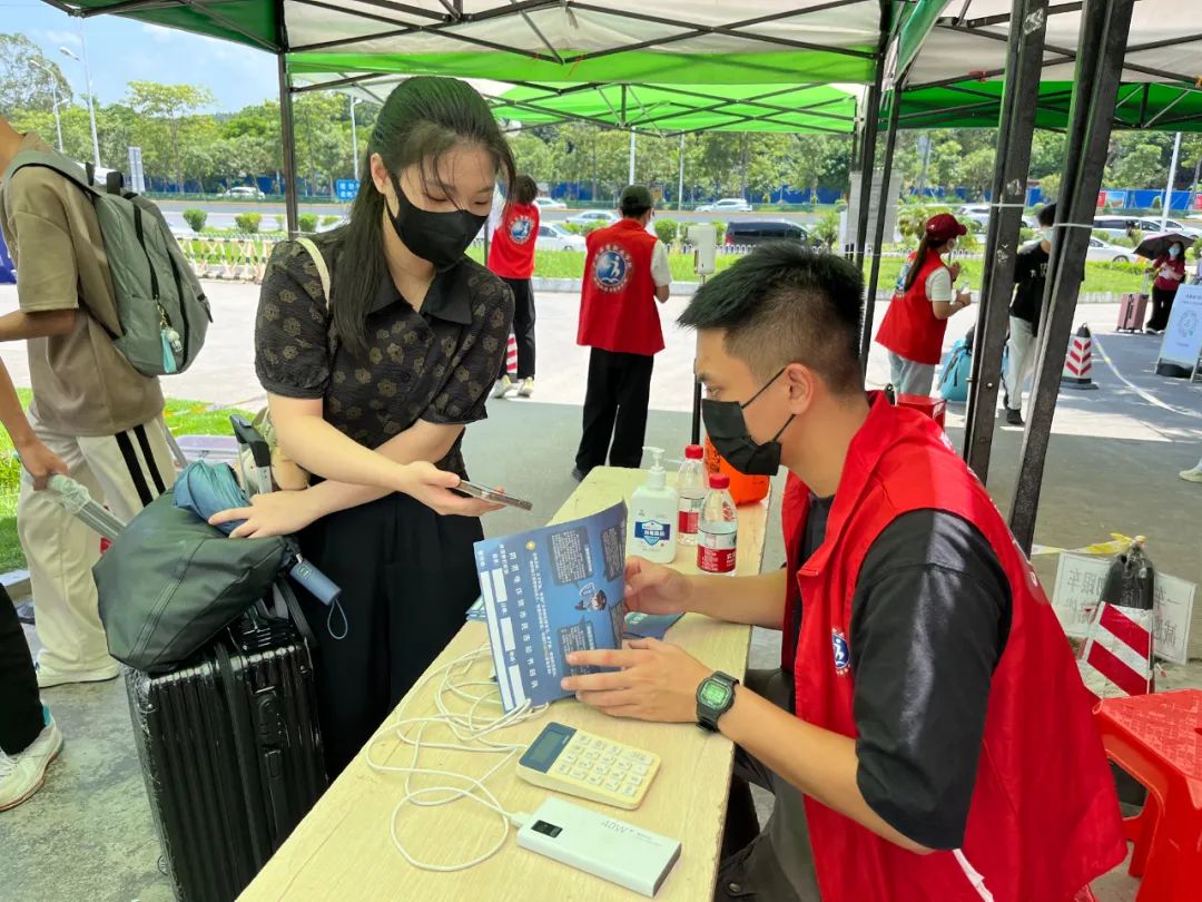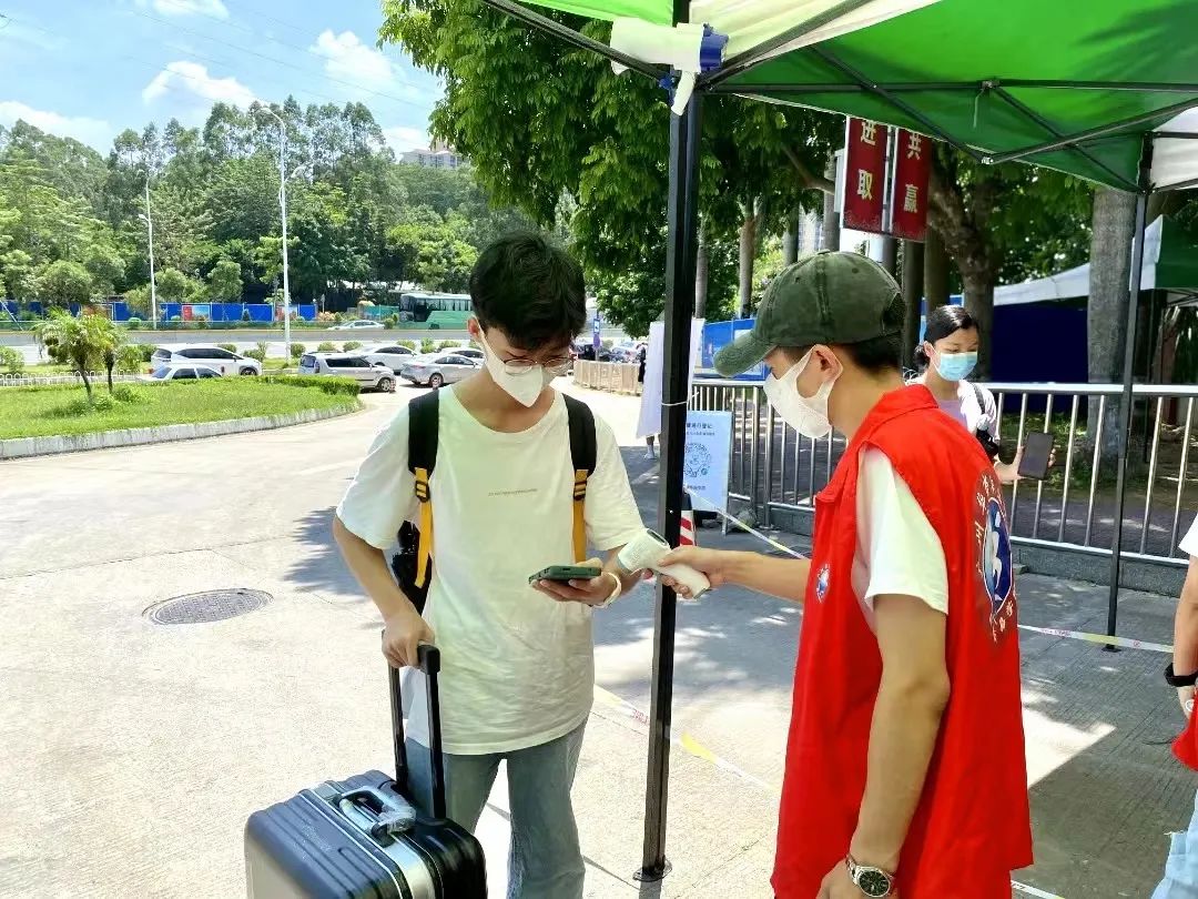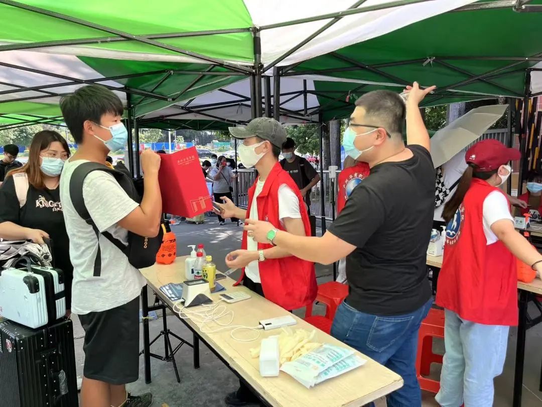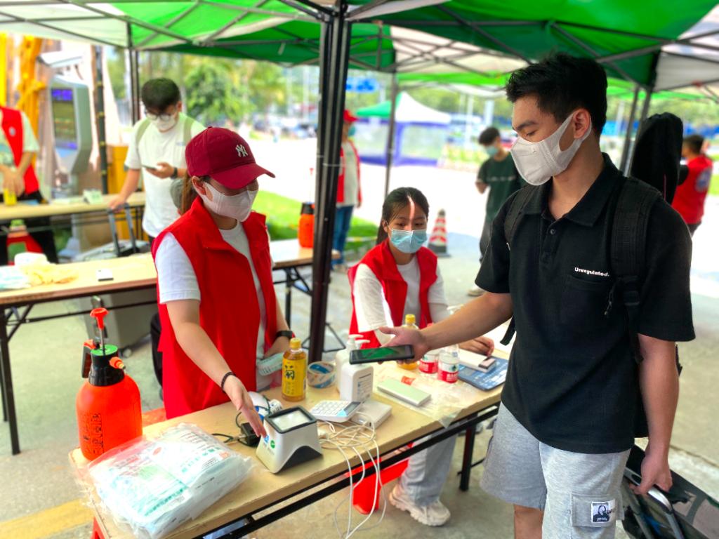 志愿者们细心引导同学们做好个人防护