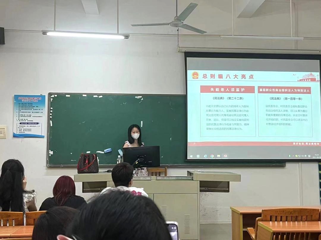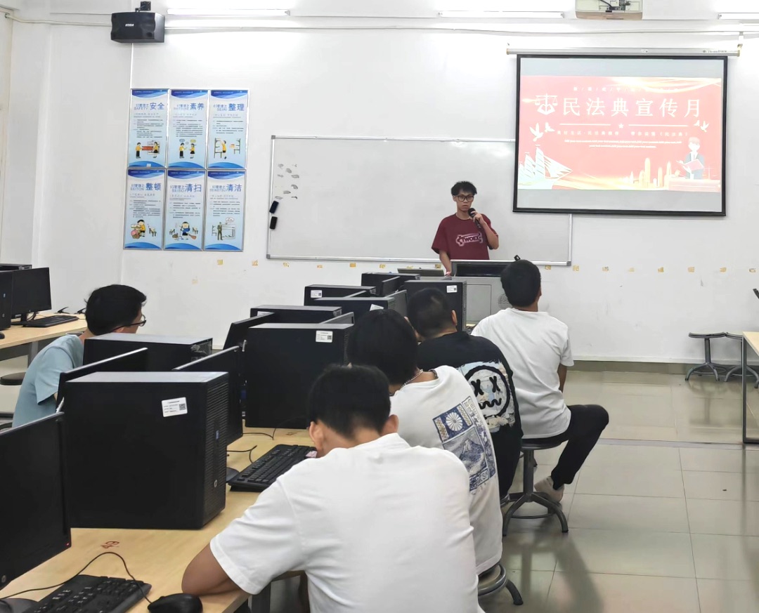 各班积极开展主题班会,宣传民法典知识。班会上,宣讲员深入浅出的向同学们介绍了《民法典》宣传月的意义、《民法典》的基本内容及对人们日常生活的重大意义等内容,并向同学们讲述民法典故事,传播民法典知识,阐释民法典精神,提升大家知法守法、懂法用法的法治思想与能力