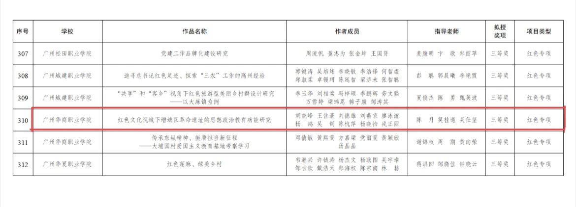 自第十七届“挑战杯”广东大学生课外学术科技作品竞赛红色专项赛启动以来,国际经济与贸易学院积极动员并组织我院学生参赛。在今年比赛中我院参赛作品——《红色文化视域下增城区革命遗址的思想政治教育功能研究》荣获红色专项三等奖!