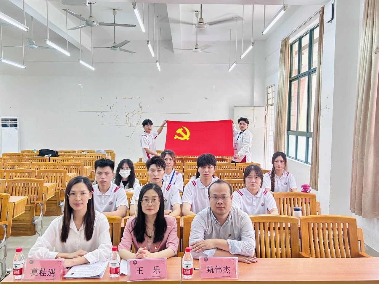 参加本次会议的有:国际经济与贸易学院学生第一党支部书记莫桂遇、组织委员甄伟杰、宣传委员王乐,学生第二党支部书记陈月、组织委员廖素娇,以及16名入党积极分子和党务组工作人员。