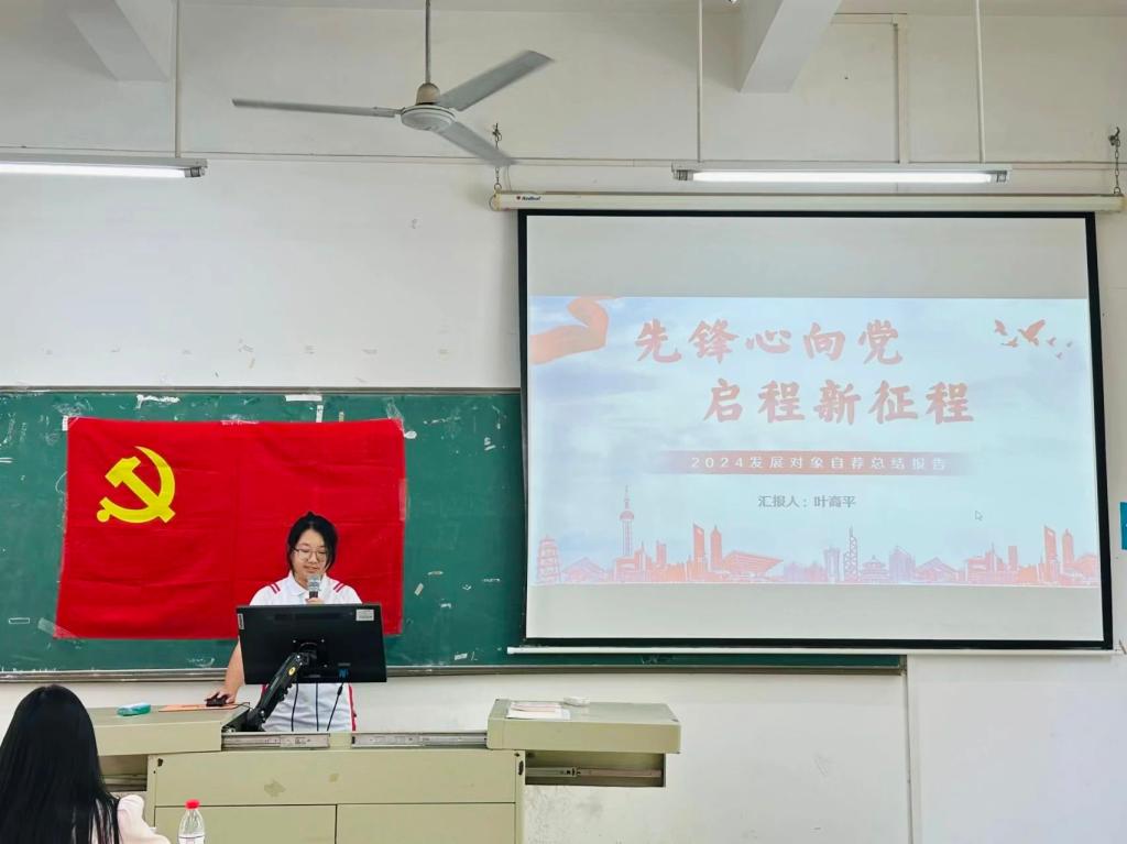 首先,6名入党积极分子分别上台进行自我陈述,并向党组织汇报自己的入党动机和心路历程。他们分别从自身思想、学习、工作、生活、获奖等方面阐述自身情况,深刻分析了存在的优点和不足,并作出反思与改正,指出自己未来的奋斗目标以及现有不足,都纷纷表示将会继续向党组织靠拢,以党员标准规范自己。