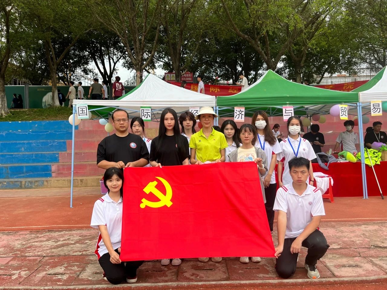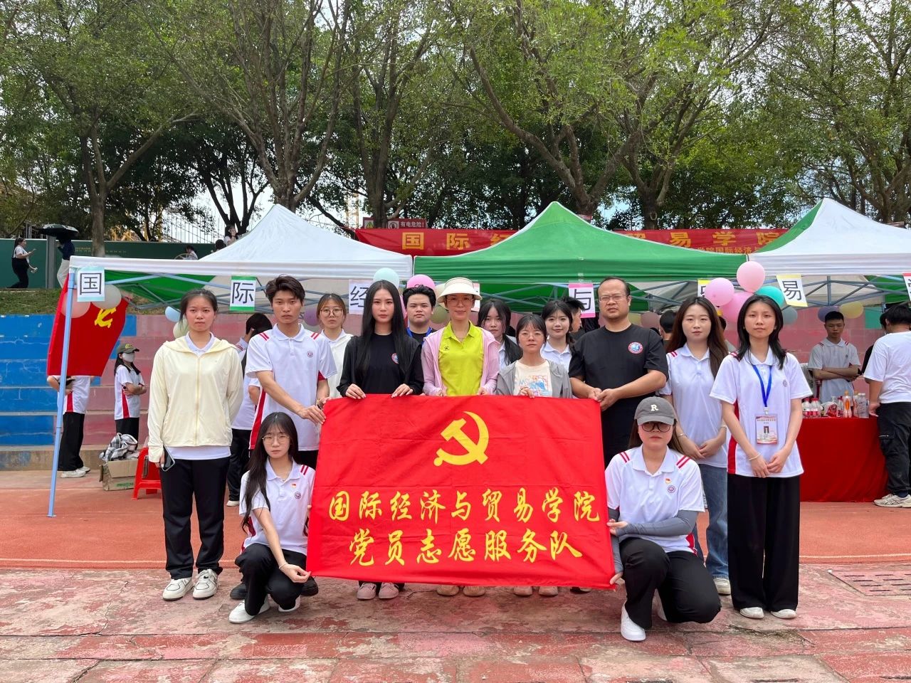 为充分发挥学生党员的先锋模范作用,增强党员服务意识,协助我校师生趣味运动会各项活动的安全有序、高效、高质量地开展,国际经济与贸易学院学生第一党支部、第二党支部于2024年5月17日在西区田径场设立国贸学院党员先锋服务岗,组织全体师生党员积极参与到运动会的各项志愿者服务工作中,为本届运动会的顺利开展保驾护航。