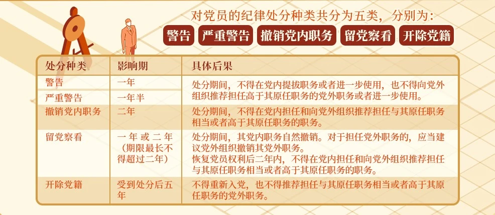 党纪学习教育·每日一课④|对党员的纪律处分有哪些,影响期各多长