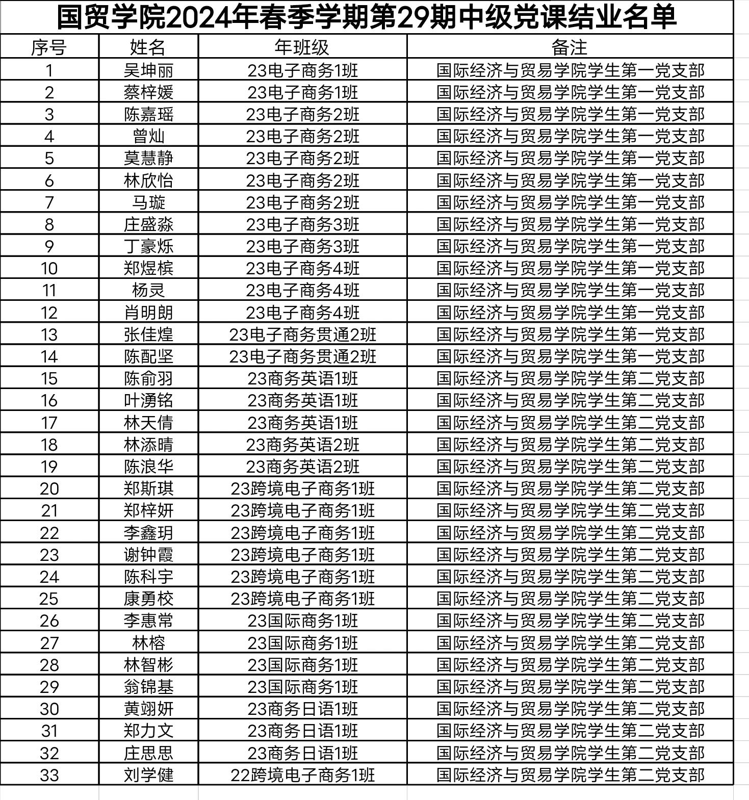 国际经济与贸易学院2024年春季学期中级党课培训回顾结业名单公示
