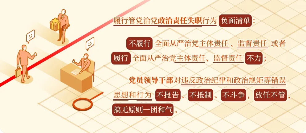 全面从严治党是各级党组织的职责所在,落实管党治党政治责任是各级党组织最根本的政治担当。《中国共产党纪律处分条例》对履行管党治党政治责任失职行为作出处分规定。主要分为两种情形: