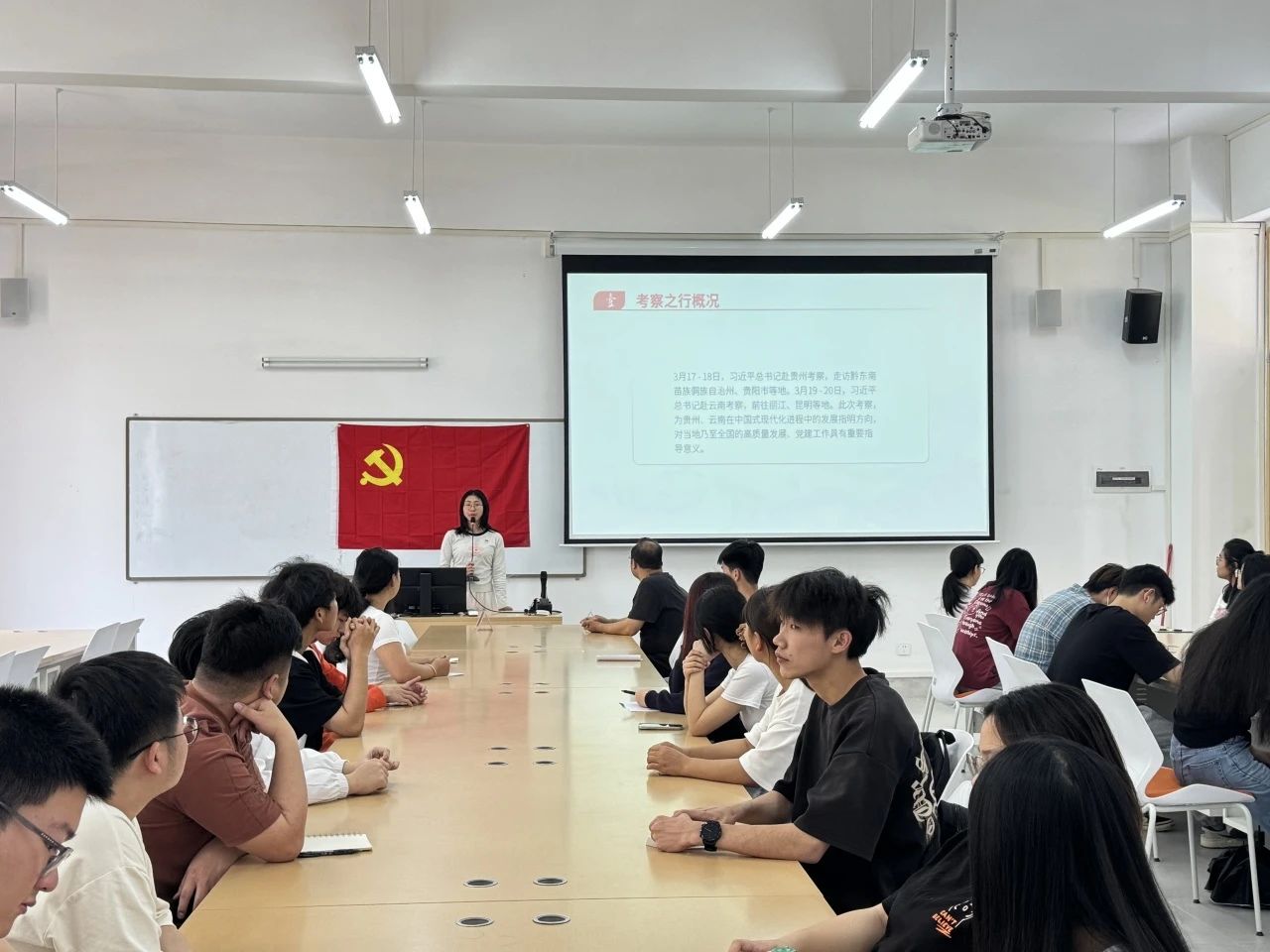 为深入学习贯彻习近平总书记重要讲话精神,进一步提升支部成员的思想政治觉悟,强化理论武装,2025年4月10日中午,数字商务学院学生第二党支部开展专题学习会,传达学习贯彻习近平总书记在贵州和云南考察时的重要讲话精神。本次学习由支部书记林翠霞领学,李宇瑶主持,组织委员甄伟杰老师、学生预备党员和入党积极分子参加本次学习。