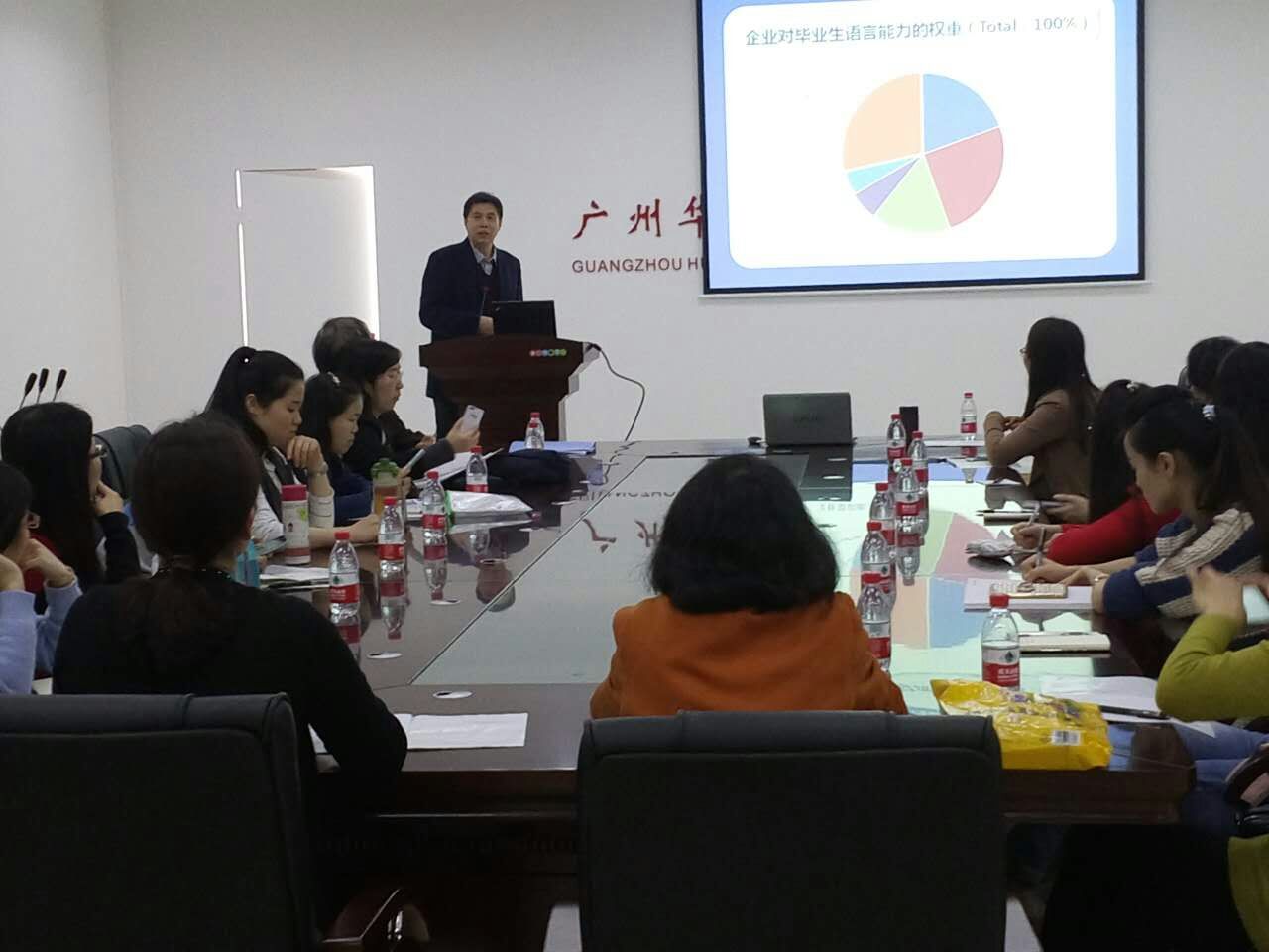 2016年3月23日下午四点,国贸系大学英语教研室和商务英语教研室交流会在崇贤楼一楼会议室召开。国贸系主任祁建、广东外语协会理事长潘雪峰、大英教研室主任龙玲珑、商英...