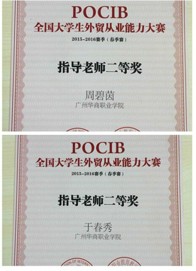 由中国国际贸易学会、全国外经贸职业教育教学指导委员会主办的“POCIB全国大学生外贸从业能力大赛”于2016年4月8日~27日举行,20名来自国际商务和商务英语专业的同学经...