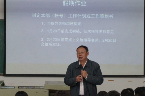 2016年12月21日中午12时30分,我系团总支学生会在博学楼C101召开工作总结大会,指导老师吴仕坚到场发表了讲话。 大会由主席团成员张华健主持。会议伊始,指导老师吴...