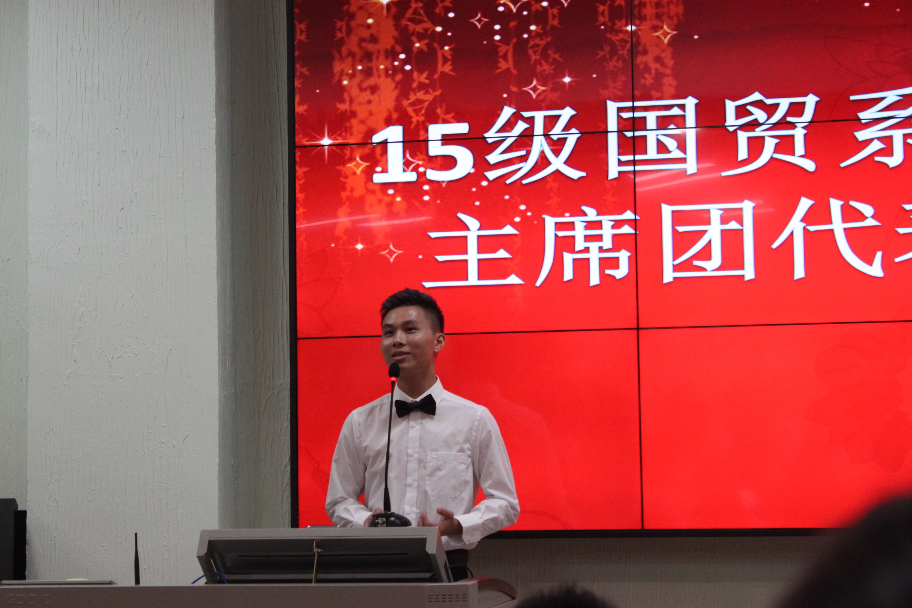 2017年10月18日星期三晚7时,国贸系第八届学生干部表彰暨团总支学生会换届大会在博学楼c101举行。国贸系教学副主任沙园松、学工副主任孔凡龙、团总支书记兼学生会指导老...