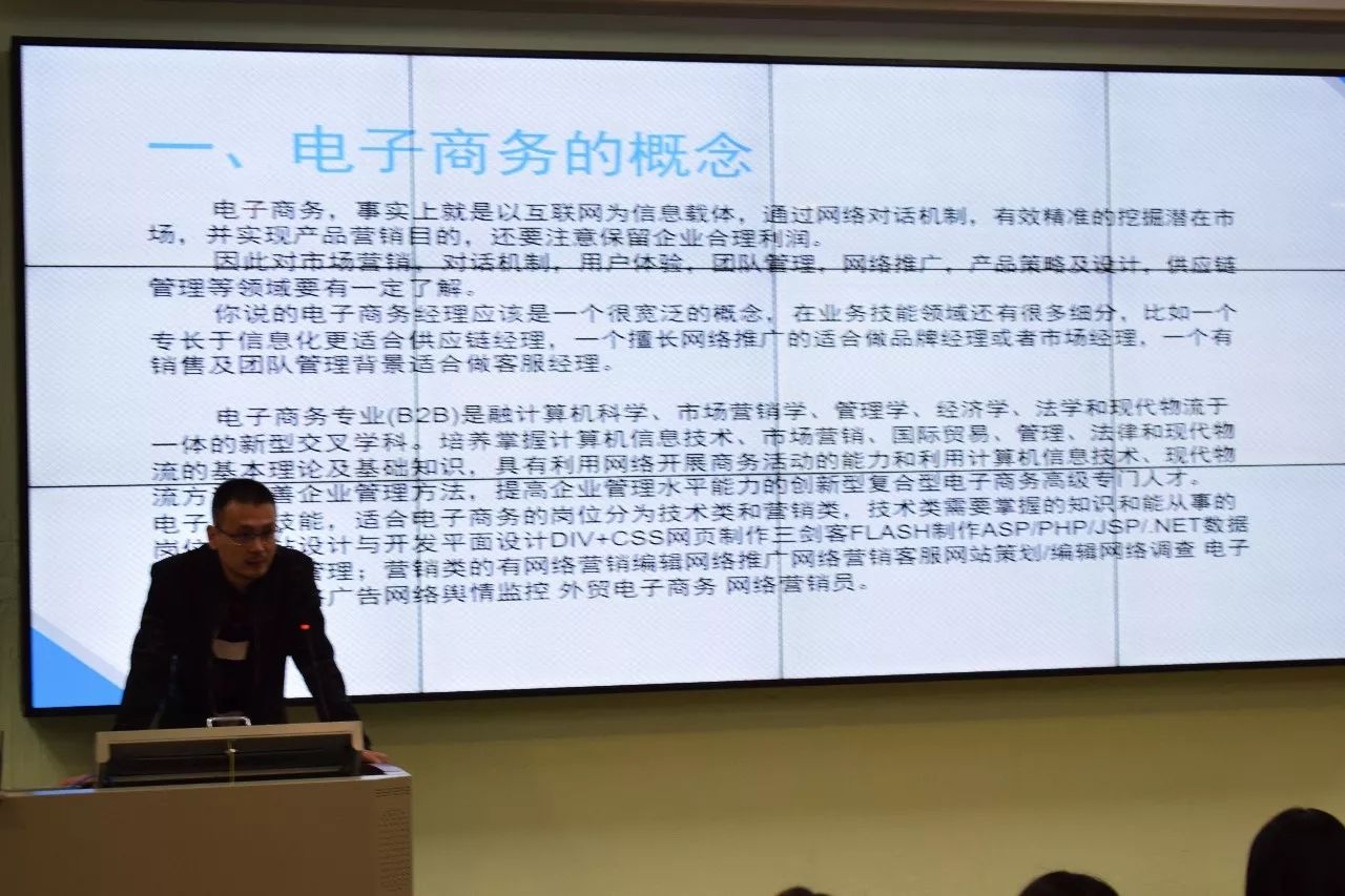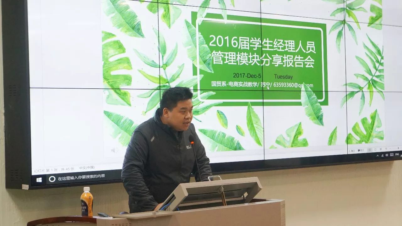 2017年12月5日晚上7点,16级学生经理培训第三讲在博C101开讲,出席本次培训的嘉宾有:电子商务学院副主任沙园松,主讲人为:国贸系教师苏宁。 培训主要围绕三点,一、管...