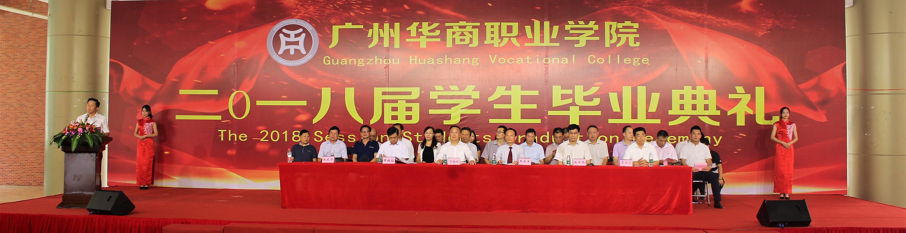 2018年6月22日早上9点,广州华商职业学院于启智楼一楼大厅举行2018届学生毕业典礼,出席人员有:廖榕就董事长、王乐夫院长、张武华副院长、黄桂标书记等领导,毕业班辅...