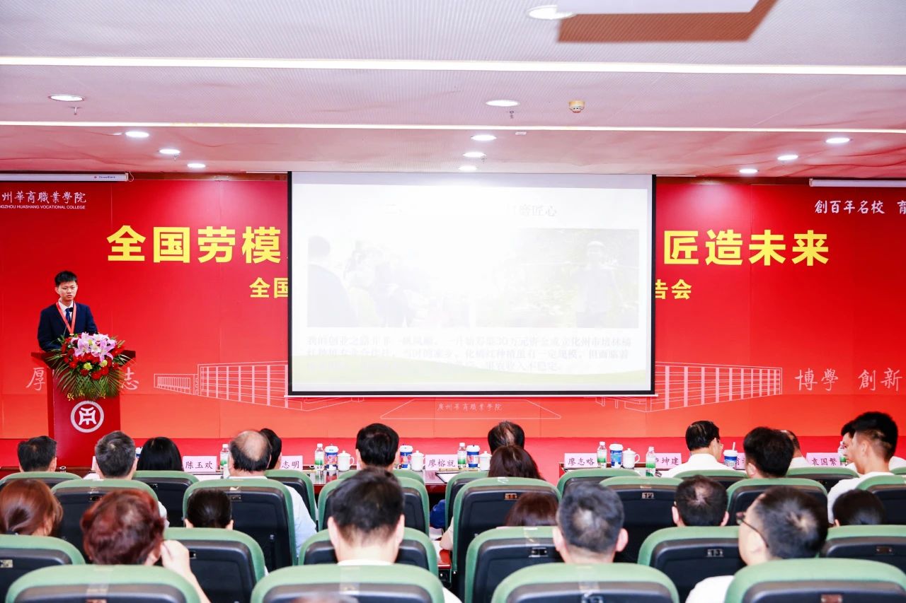 廖志略以《扎根平凡岗位,铸就非凡人生——我的奋斗之路》为题作主题报告,他以质朴语言深情回望来时路,将个人成长轨迹与广州华商职业学院“厚德、励志、博学、创新”的校训精神深度融合,为在场师生诠释了职业教育如何赋能乡村振兴的生动实践。