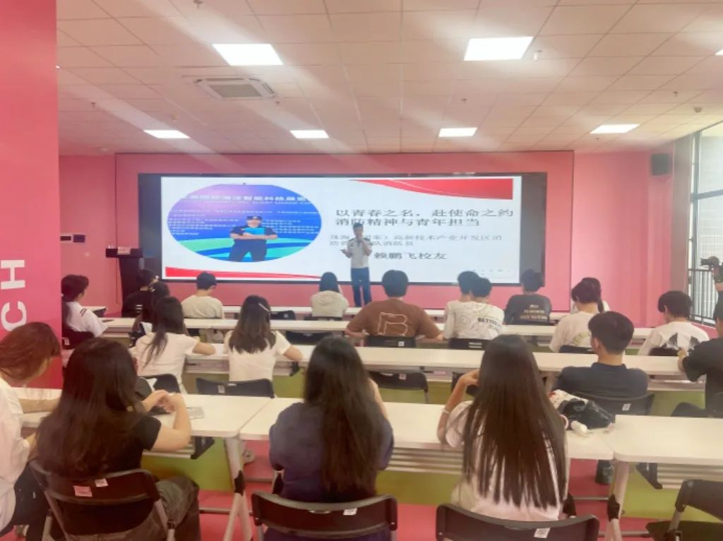 为进一步发挥优秀校友的榜样引领作用,引导青年学生感悟责任担当、汲取奋进力量,6月9日,学校邀请优秀校友赖鹏飞重返母校,开展以“以青春之名,赴使命之约:消防精神与青年担当”为主题的分享会。本次活动通过线上线下结合的方式,近100余名学生聆听了学长的成长经历,传递责任与担当。