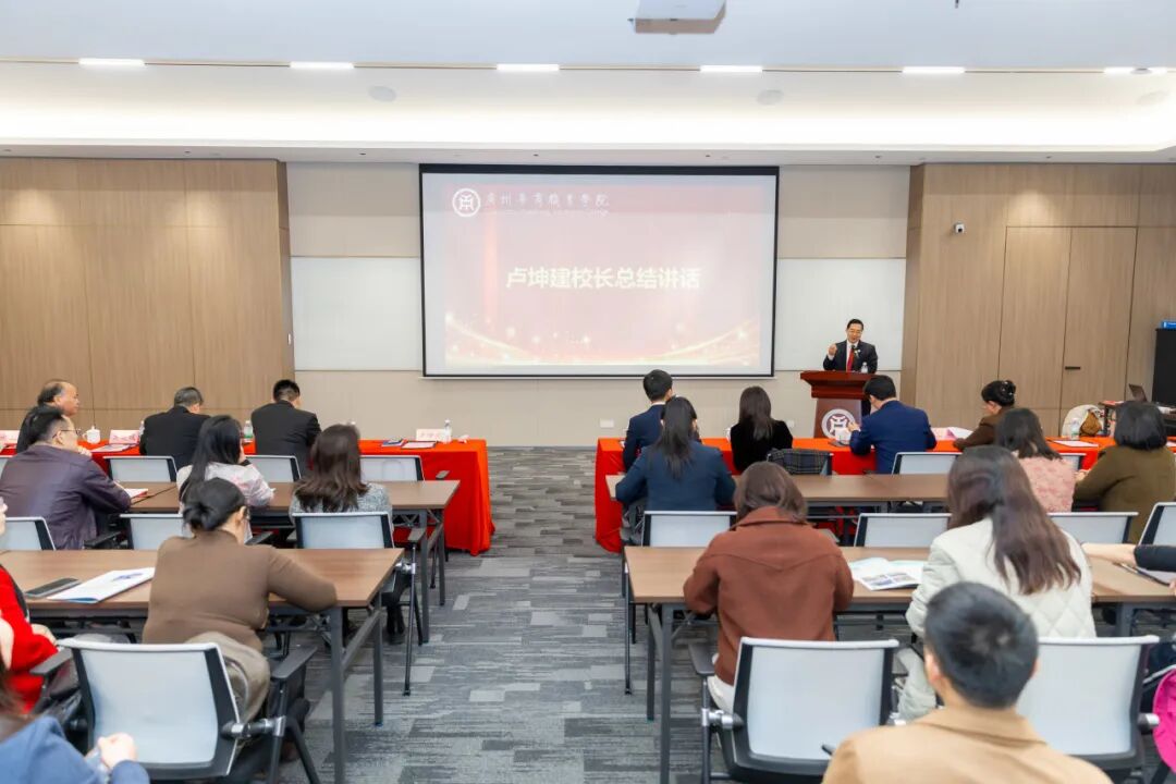 仪式最后,卢坤建校长作总结讲话。他对化橘红研究院的成立表示热烈祝贺,并对研究院的未来发展寄予厚望。他从我校聚焦产品办学的发展定位与技能型大学立足产品生产要求之间的内在关联,以及我校“塑造产业领袖人格,培养创业行为习惯”的育人要求与“依托产业,聚焦岗位,面向世界,服务就业”的办学理念之间的内在逻辑入手,深度剖析了成立化橘红研究院的必要性,并据此强调学校需坚定不移地推进产教融合,持续地深化校企合作,紧密对接产业需求,为社会输送适配产业发展的高素质技能人才。