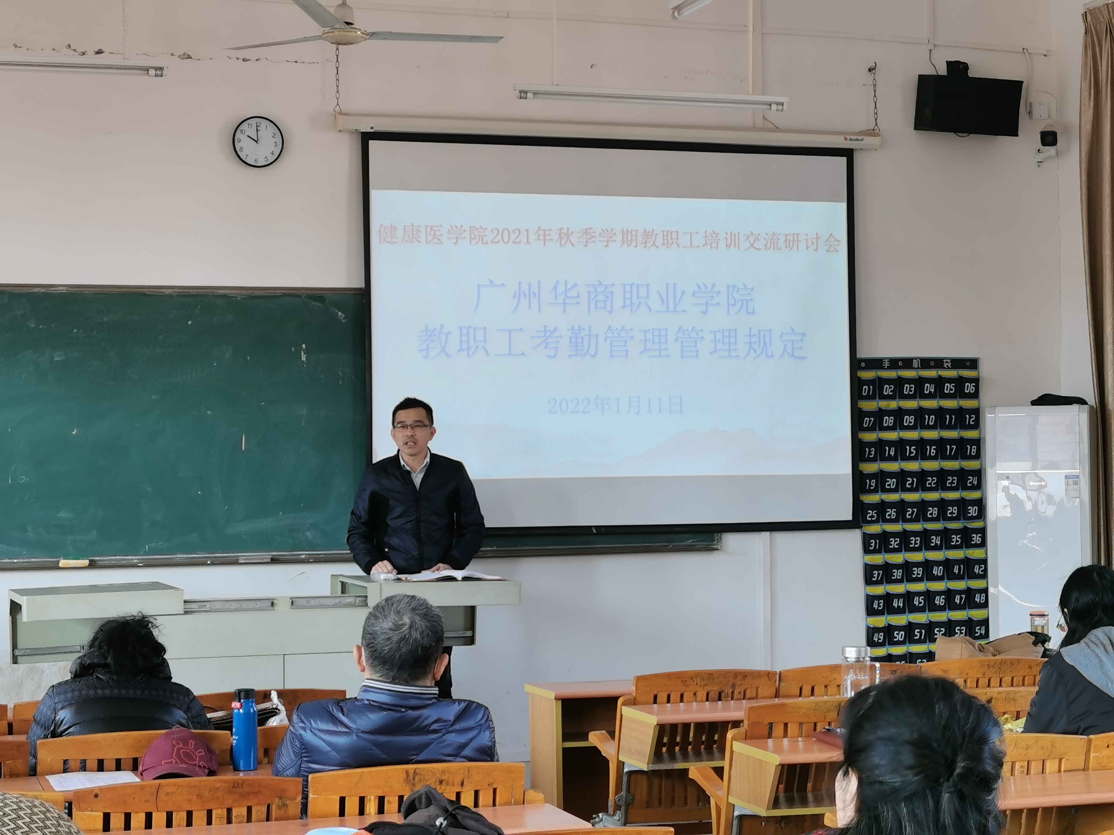 为了进一步加强学院师德师风建设,提升教师课堂授课技能,2022年1月11日,健康医学院在博学楼B506举办2021年秋季学期教职工培训交流研讨会。