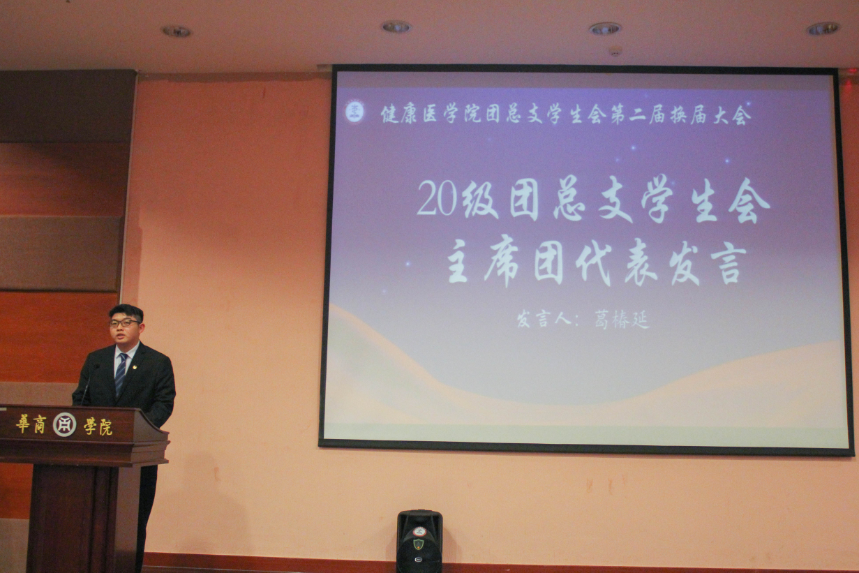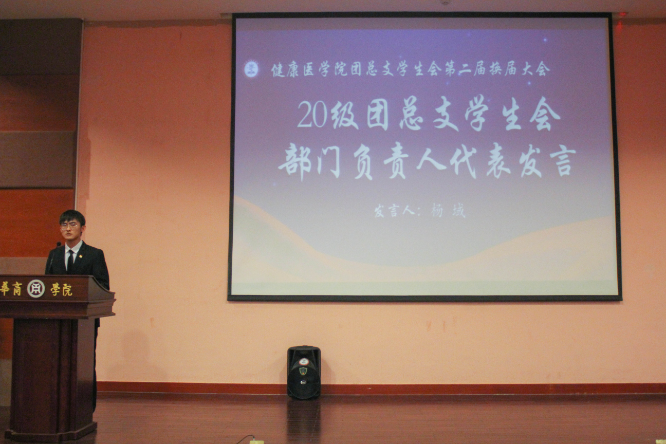 紧接着,20级主席团代表葛椿延同学以及20部门负责人代表杨域同学发言,两位代表首先对各位老师于同学的支持和信任表示由衷的感谢,感谢健康医学院团总支学生会的支持和鼓励。希望在未来健康医学院团总支学生会能不断完善,成为一支有组织有纪律的组织,使团总支学生会这个大家庭充满温馨和爱意,创造更璀璨的辉煌。
