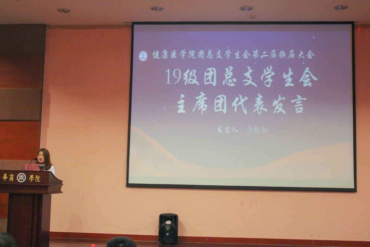 接着,19级主席团代表李舒如同学发言,她对各二级学院兄弟的到来表示感谢,在这一年里,获得了许多成长,同时,李舒如同学给新一届团总支学生会提出了建议,希望健康医学院团总支学生会在未来取得更辉煌的成就。