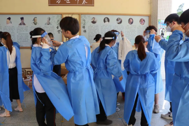 在烈日下,成员们穿着厚重的防护服,开始了一天紧张而忙碌的工作。成员们在各自的岗位上,发挥着至关重要的作用,协助扫码,维持秩序,任由防护服闷热不透气,身上的衣服湿了又干,干了又湿,但大家全然不顾,仍然以高昂的斗志坚守岗位,以实际行动展示了志愿者的责任和担当。在维持核酸的过程中有着很多的当地老人不了解如何进行操作,成员们耐心地解释并且协助老人们顺利完成核酸检测。