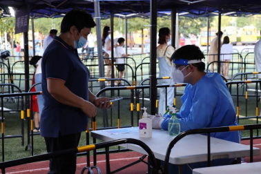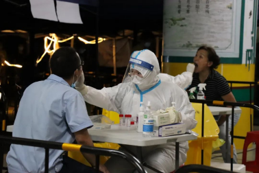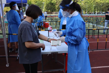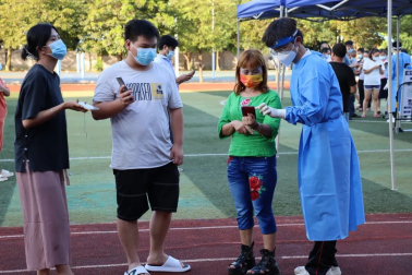 2022年7月11日,广州华商职业学院健康医学院“赤忱燃梦“实践队来到广州市增城区宁西街镇泰学校,配合增城区宁西街道村民进行全员核酸检测。