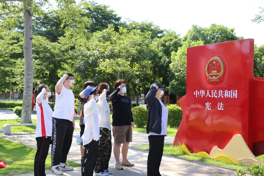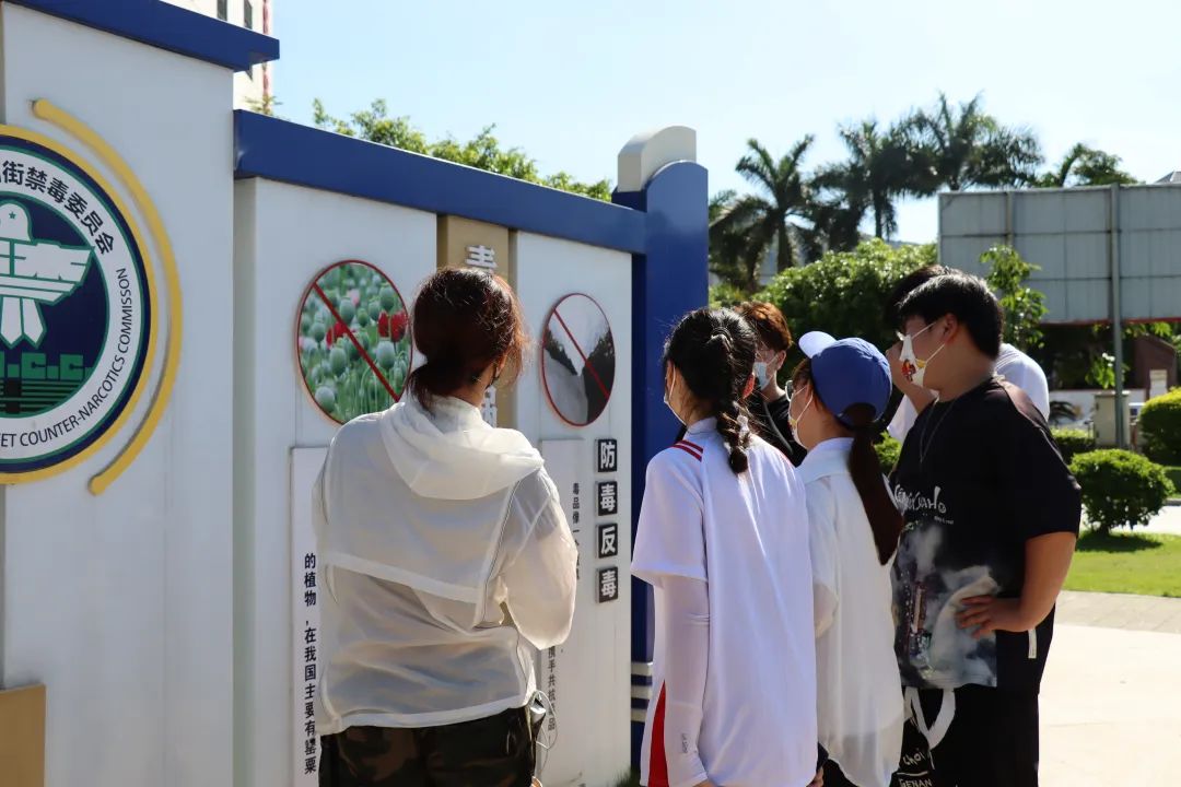 2022年7月13日中午,为深入学习、宣传禁毒和法律知识,健康医学院“赤忱燃梦”实践队一行人利用进行健康普查服务的休息时间来到增城区宁西广场,参观学习了宁西街法治文化广场和宁西街禁毒主题公园。