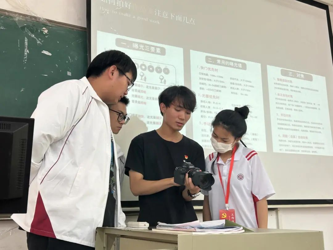 周咏韬同学通过什么是摄影、怎么认识相机、如何拍好作品以及现场指导拍摄技巧向同学们进行摄影培训。众所周知,摄影最本质的认识就是记录生活,通过一张深刻且具有感染力的图片向人们展示对客观事物的描绘。如何拍好一张优秀的图片也是非常重要的,周咏韬师兄向大家分享了几点自己通过实践中积累的经验:1、曝光的三要素;2、常用的曝光值和在什么场合要调多少的光圈数值;3、相机对焦的功能调节。在讲解的过程中,同学们踊跃的登台尝试学习,也将平时遇到的工作问题向师兄提出得以解答。