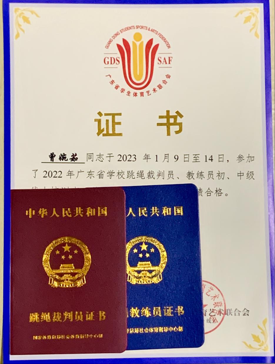 除此之外,曾婉茹还在2022年参加了裁判员初级与中级的培训,顺利结业,而后又取得了三级裁判员证书和初级教练员的证书。