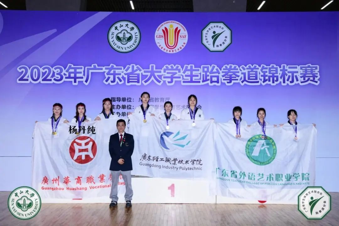 由广东省教育厅主办的2023年广东省大学生跆拳道锦标赛于6月17日-21日在中山大学珠海校区举行,通识教育中心刘鹤鸣、姚锡均老师作为主教练,杨俊萍主任担任领队,共带领11名学生参加品势、竞技、跆舞等多个项目进行角逐,最终获得14金5银4铜,团体总分一等奖。健康医学院共有4名学子代表学校参加了此项大赛,并斩获佳绩,其中21人物形象设计1班杨丹纯同学荣获全省唯一女子个人品势最佳技术奖。