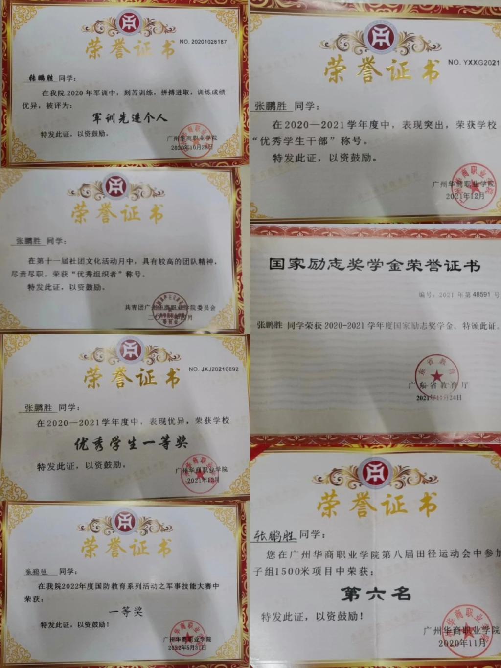 1、2020年10月获“军训先进个人”称号