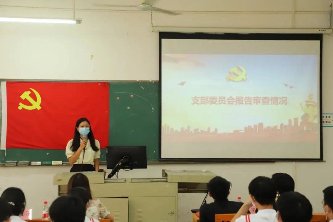 学生第一党支部组织委员郑晓芬向大会报告支部委员会对张乐瑶等10名同志的审查情况。