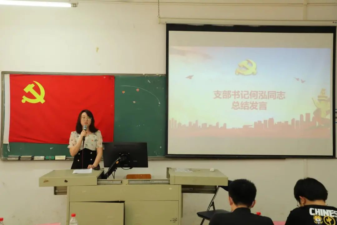 学生第一党支部何泓书记为此次党员大会作总结发言。何泓书记指出:恭喜以上10位同志经过学院的精心培养和自己的努力奋斗顺利被吸收为预备党员,同时提醒大家务必严守政治纪律和政治规矩,守住纪律底线,要时刻以一名优秀共产党党员的标准严格要求自己。