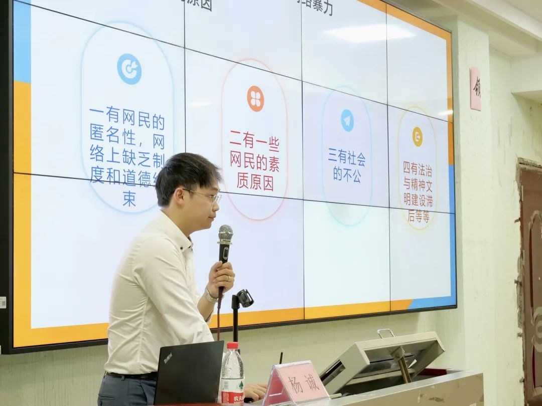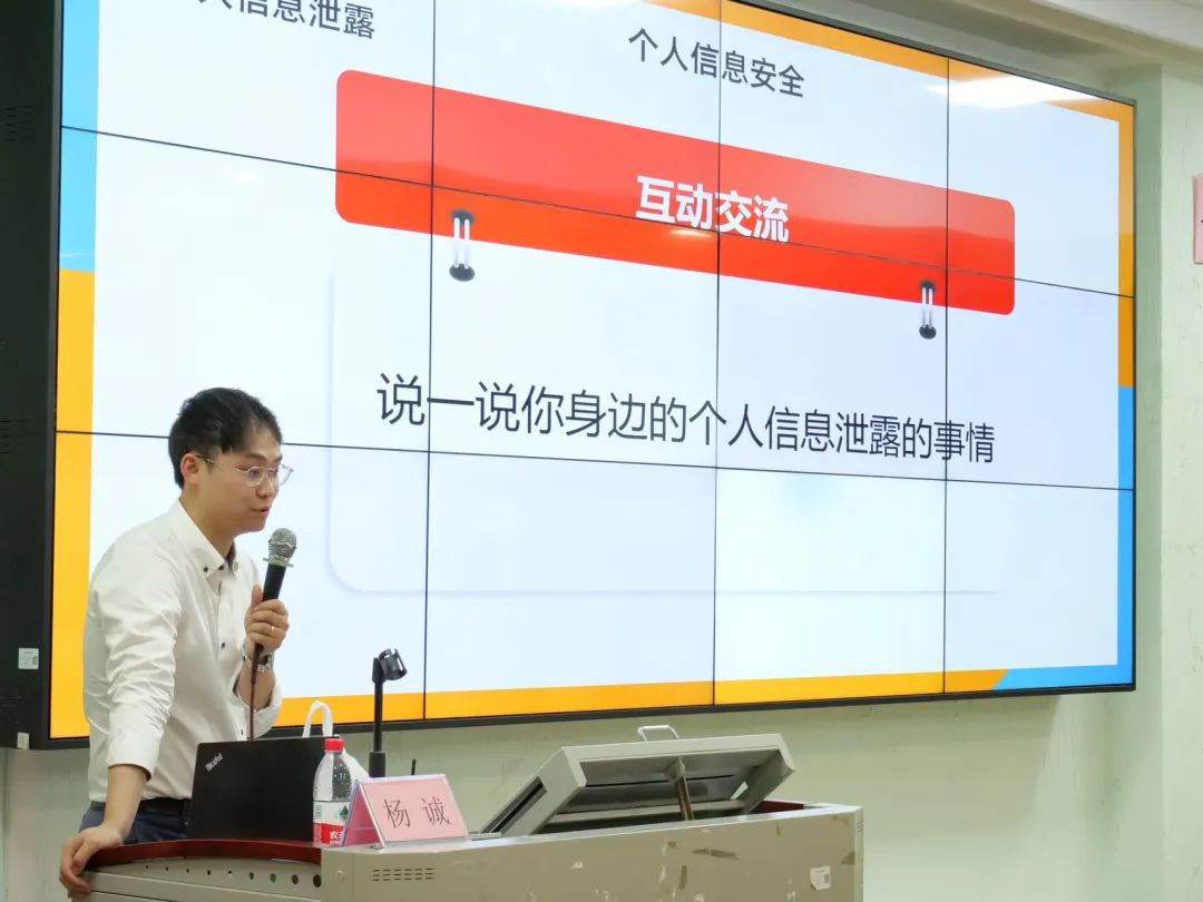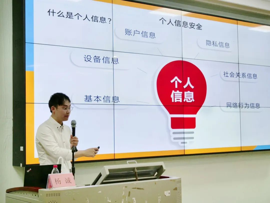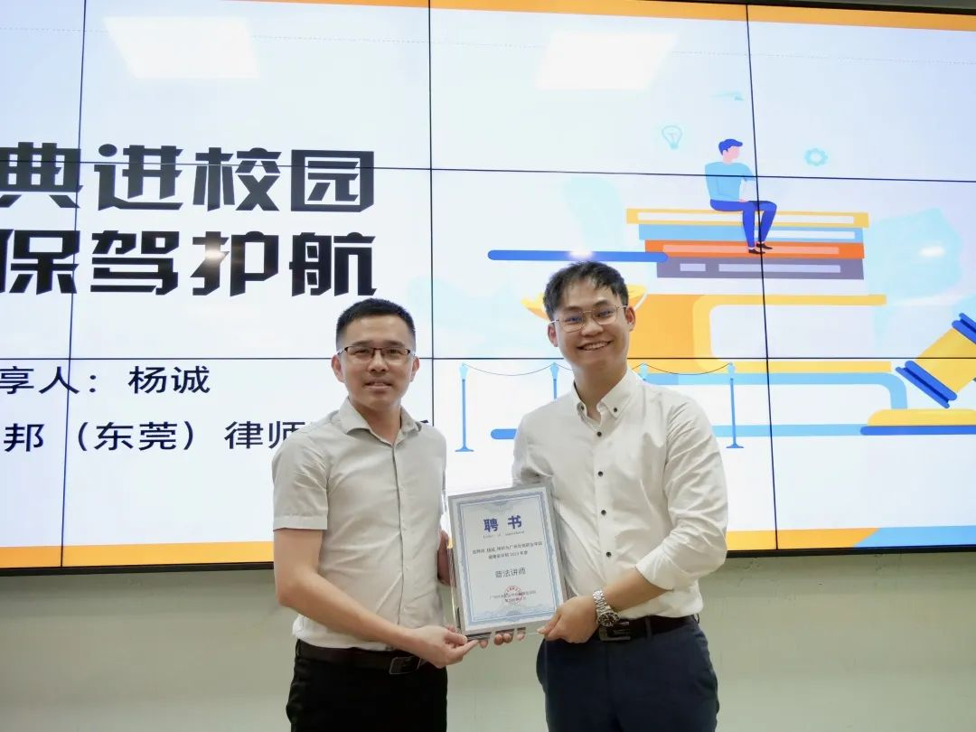 杨诚律师分享结束后,团委副书记梁杨清老师也结合自身经历分享了如何拒绝网络暴力和防范个人信息泄露。随后,学院党总支副书记黄泽栋老师为杨诚律师颁发“普法讲师”的聘书,正式聘请杨诚律师为健康医学院2023年度普法讲师。