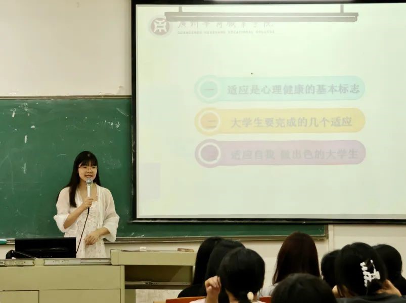 在专题讲座中,老师说道,一方面,新生要主动适应,不回避、不逃避困难和问题,通过积极融入环境,如参加集体活动等建立归属感;另一方面,新生要积极寻求支持,通过建立良好的人际关系来构建必要的社会支持系统以有效应对可能面临的新问题。最后,新生应加强自主学习,如合理使用网络设备帮助自己养成良好的学习习惯,积极克服自控力不足等主观问题,以适应学业、人际等方面的新要求。