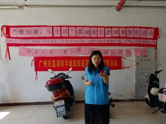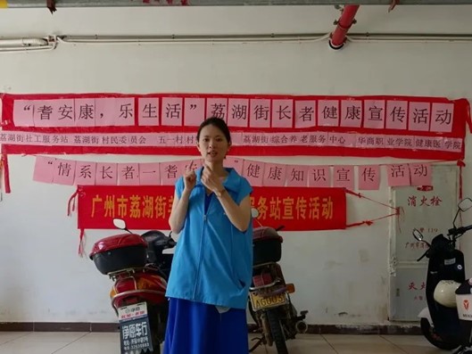 7月11日上午,广州华商职业学院健康医学院“医行荔湖 同心逐梦”社会实践队与荔湖街道五一村村委会、荔湖街社工站联合举办健康宣讲和健康服务活动,健康医学院专任教师冯滢瀛老师向社区长者普及脑卒中知识,黄惠珠老师向社区长者普及三伏天晒太阳和中药用药相关知识,学生志愿者为长者提供健康普查、康复理疗等服务。