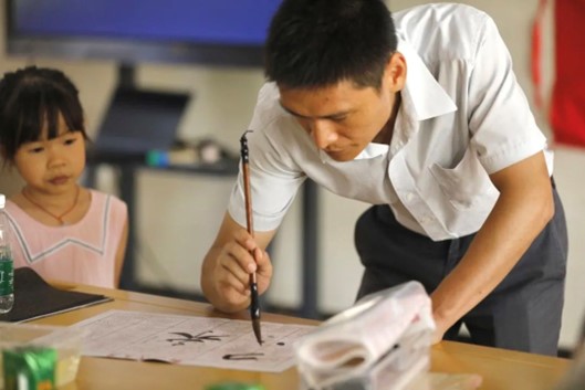 虽然长者们年纪较大,但学习热情不减,一笔一划,规规整整,用沉稳的手,铿锵写下“饮饯荔湖上”、“健康中国”等字句。有的长者第一次接触,不太熟悉毛笔的使用,志愿者们在旁边手把手教长者们正确的握笔姿势,写好一撇一捺、一横一竖、一点一钩。在课堂上,长者们也讲述他们年轻时的事迹,例如“年轻时,书法比赛拿过一等奖”,“以前是一位写对联的师傅”等等。通过在课堂上的学习交流,大家收获颇多,进一步学习到了更多书法技巧。