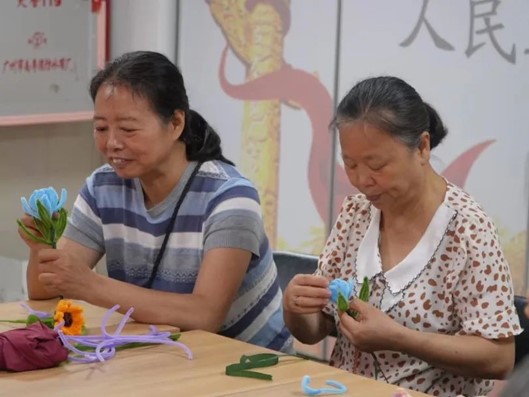 为进一步丰富社区长者的精神文化生活,锻炼老年人的动手动脑能力,培养老年人的手工兴趣爱好。2023年7月11日上午,健康医学院“医行荔湖 同心逐梦”社会实践队协助荔湖街社工站开展了“心灵手巧,耆趣无穷”第二节长者手工制作活动。