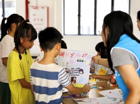 活动伊始,社工通过“一心二用抓手指”热身游戏来活跃现场气氛,让小朋友增强团队意识,加深彼此认识。社工通过讲述防拐骗知识,从在家时、外出时等不同角度向小朋友讲解防拐骗的安全教育知识,让小朋友们更全面地了解其安全意识。随后,由社工讲解《安全意识培养》绘本,志愿者们积极引导小朋友们说出对安全意识的理解,以故事的方式提升小朋友们防拐骗意识觉悟,提高自身安全意识。