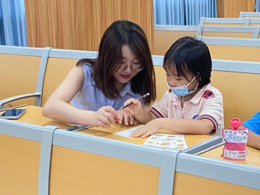 7月19日上午,健康医学院“医行荔湖 同心逐梦”社会实践队与荔湖街社工站联合开展“珍爱生命 预防溺水”儿童安全教育主题活动。健康医学院何泓老师与队员们共同参与了本次活动。相比于之前的安全知识讲座,本次活动采取歌舞相结合的方式来传达防溺水安全教育知识,小朋友们的积极性明显提升,非常认真的跟随练习,为展现最完美的表演而努力。活动结束之时,社工姐姐以填写卡片的方式记录小朋友对活动的感想。何泓老师耐心帮助一位年幼的小朋友一同填写卡片,记录这美好的时刻。