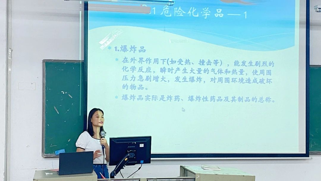 首先,杨秋燕老师讲解了九类危险化学品的分类:爆炸品、气体、易燃液体、易燃固体、易于自燃物品和遇水放出燃气体、氧化性物质和有机过氧化物、毒性物质和感染性物品、放射性物质、腐蚀性物质、杂项危险物质和物品。