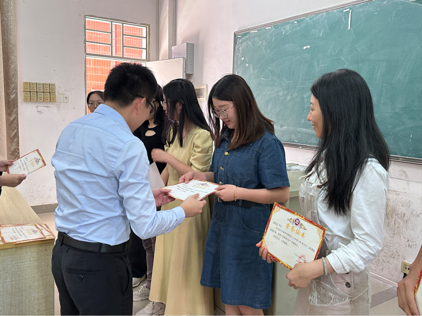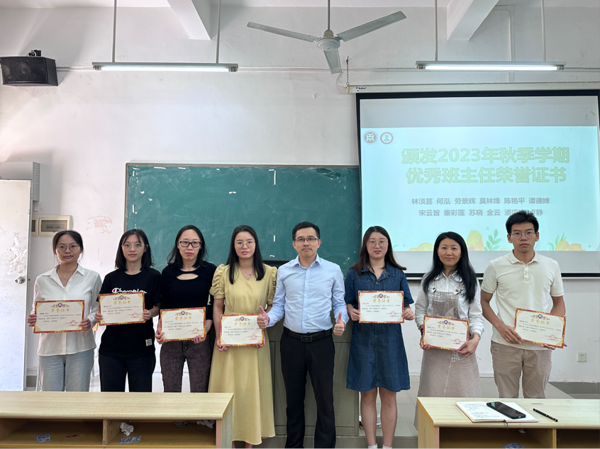 随后,党总支黄泽栋副书记为上学期荣获院级“优秀班主任”荣誉称号的老师颁发荣誉证书。
