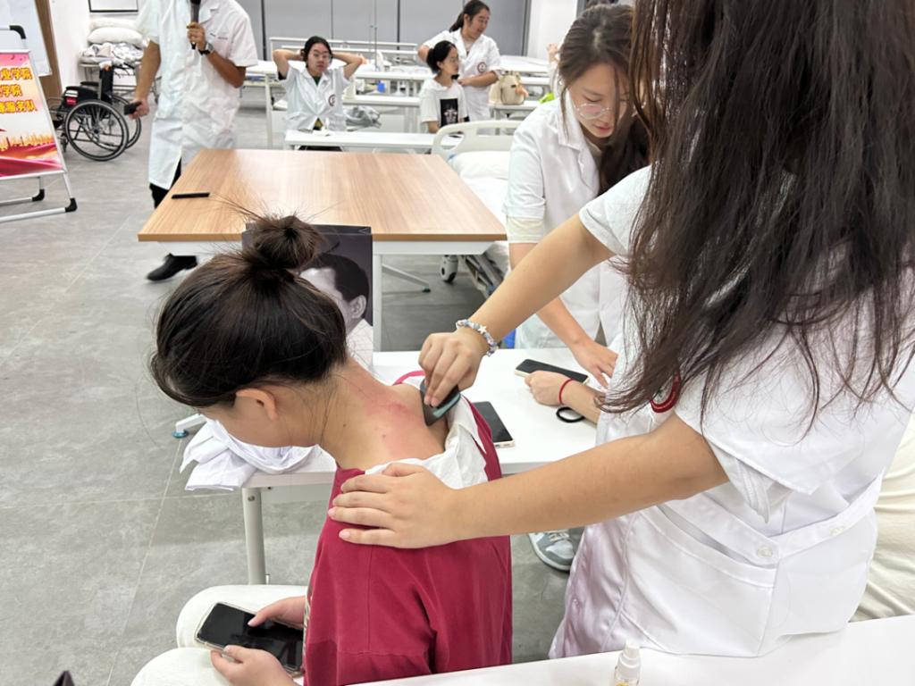此次活动我们学习到了不仅能丰富我们的专业知识理论,而且还能让我们懂得如何正确的刮痧,把握好角度和手法,学好这门技巧,希望队员们能够将所学理论和技能运用到今后的志愿活动中,更好地为师生服务。