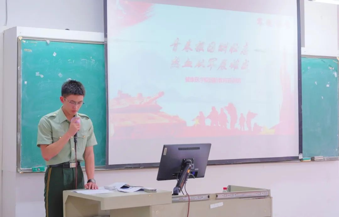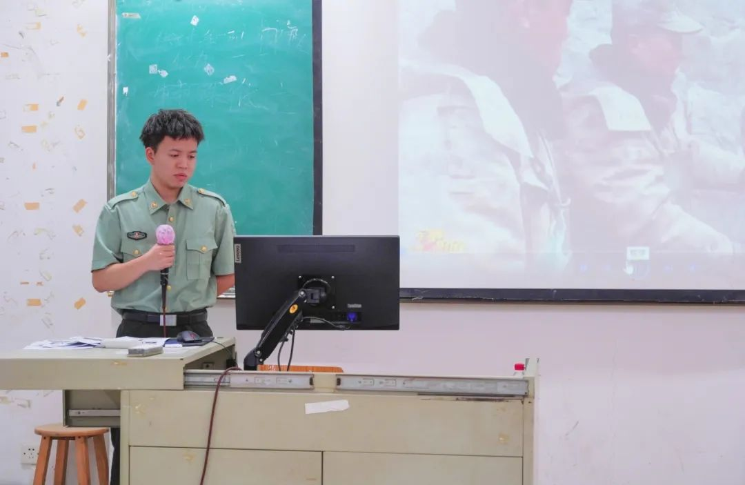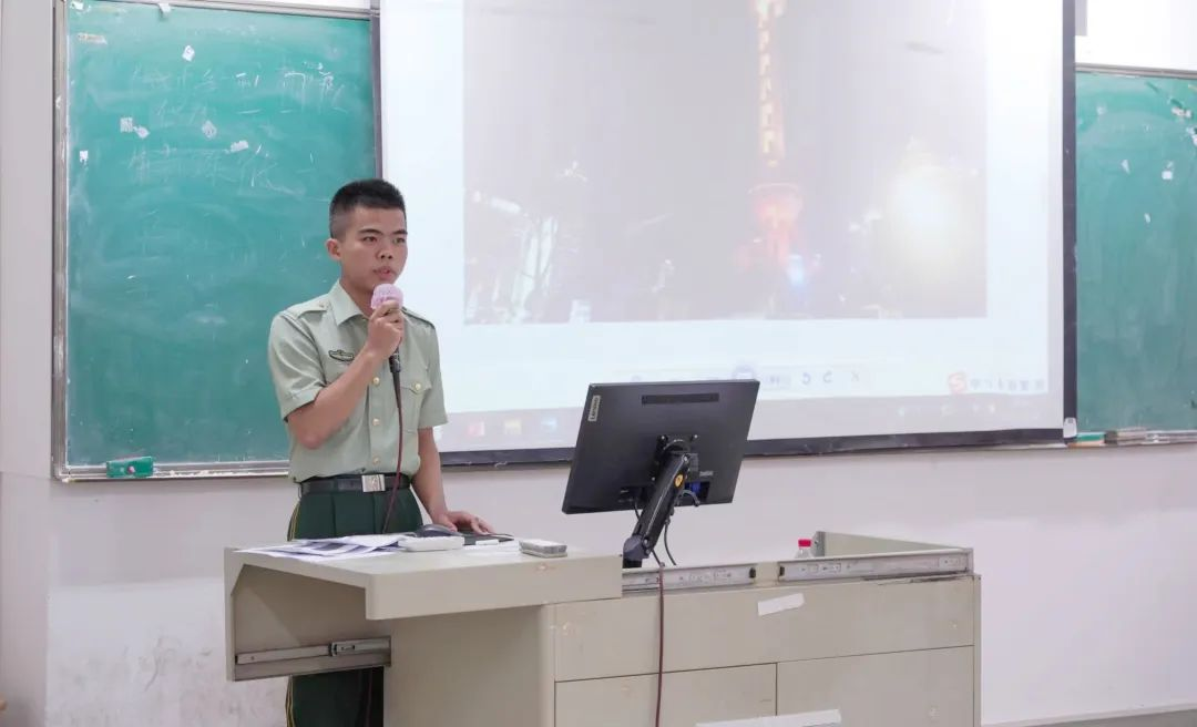 国防教育宣讲员黄嘉鑫同学分享了军旅生活的感悟,认为青春就要有奉献精神,要让青春在不懈奋斗中绽放绚丽之花;只有经历暴风雨的洗礼,才遇见到最美的彩虹。