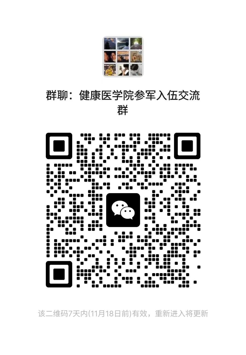 同学们如有应征入伍的问题需要咨询,请扫描下方二维码加入健康医学院参军入伍交流群。