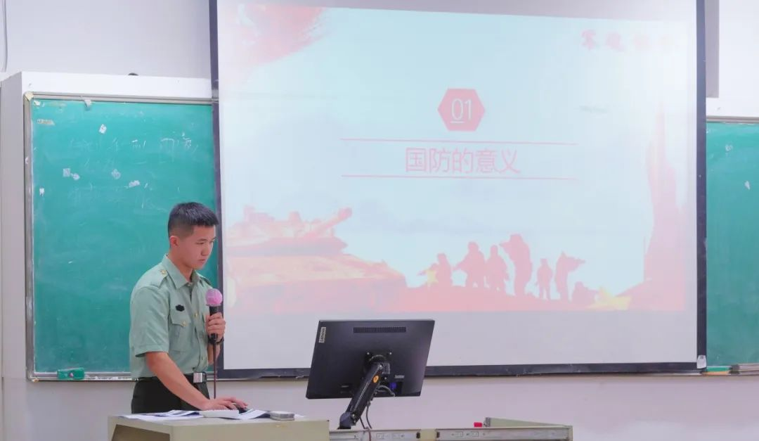 国防教育宣讲员黄锦雄同学从“保卫国家领土完整、捍卫国家主权和维护国家安全”三个方面强调了国防建设的重要性。
