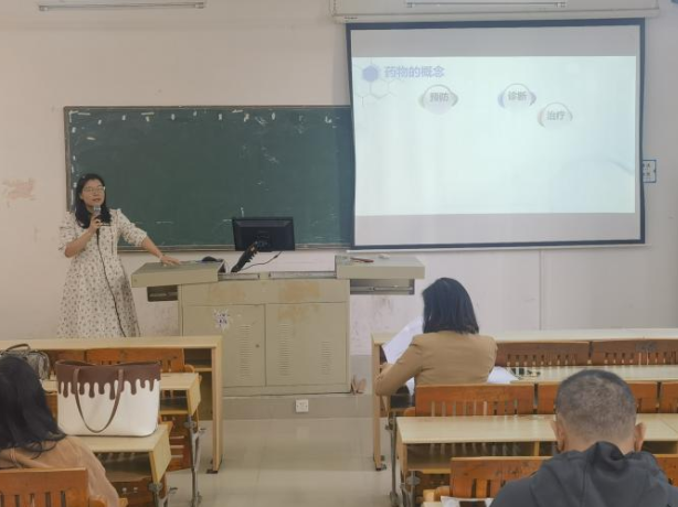 首先由药学、药品经营与管理专业的老师开头,生动地讲解了《药物化学》这门课程的实施报告以及概述,参赛老师激情四溢,带动了比赛热烈的氛围。紧接着是中药学的老师对《中药调剂技术》深入浅出地试讲,把戥秤的结构、用法详细地凸显出来,该课程实施方案将传统与现代融合,结合了我们学校的学情以及新时代的思政。护理学专业则有两队教师参加比赛,一队用丰富的专业知识巧妙地将理论和实践结合在一起,生动形象地演绎了《内科护理学》中烧伤病人病情评估方法以及头部伤口包扎方法。