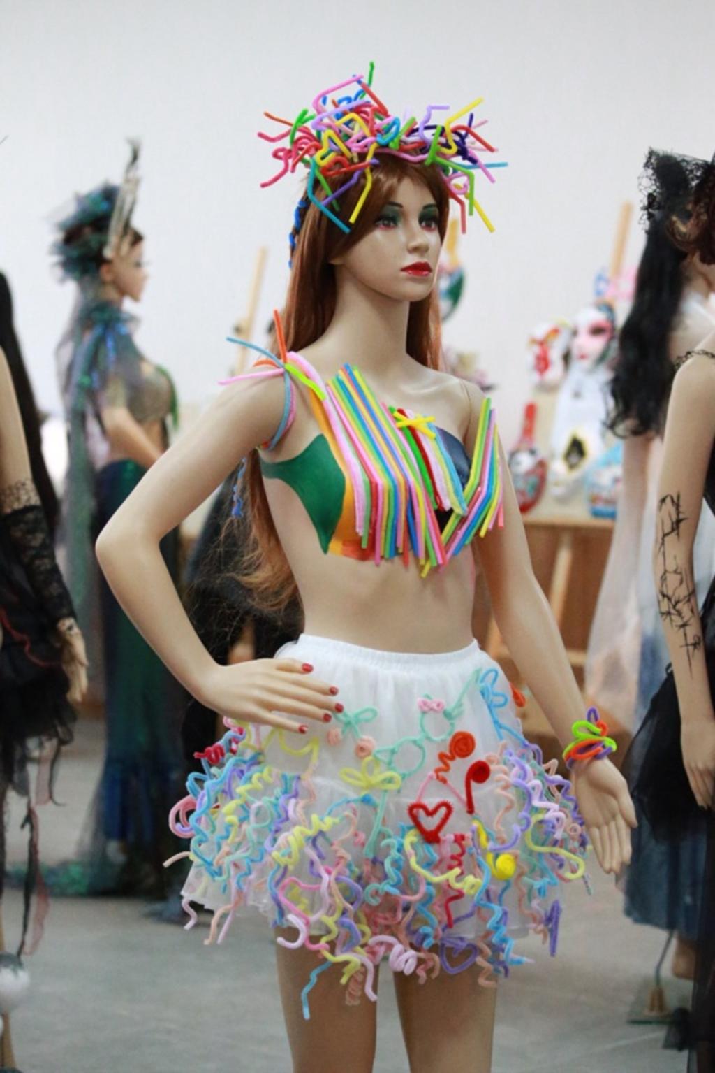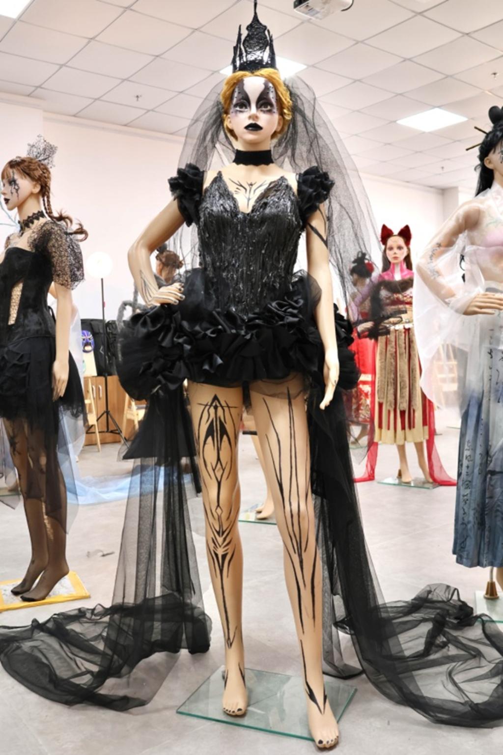 老师拟题:用面具、人体彩绘及综合材料和手段,实现“中国风”、“花卉植物”、“哥特”、“点线面”、“环保材料”等等为关键词的创作主题。让学生独立完成从设计理念、材料制作、成品展示的创意到呈现的全部流程,强调创作的独创性,坚持造型艺 术的整体性。让学生充分结合三年所学的化妆设计技术与艺术元素,从形象设计的多元化、多维度的思考出发,综合化妆、服装、饰品、发型设计、人体彩绘等综合手段,鲜明有力的表达创意和构想。