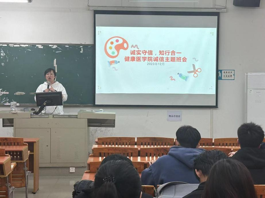为加强学生诚信思想教育、增强学生诚信意识,培养学生的诚信品质,引导学生树立诚信理念,养成“诚信待人、诚信处事、诚信学习、诚信立身”的良好习惯,健康医学院于2023年12月11日-15日对各专业班级召开“诚实守信,知行合一”诚信教育主题班会。
