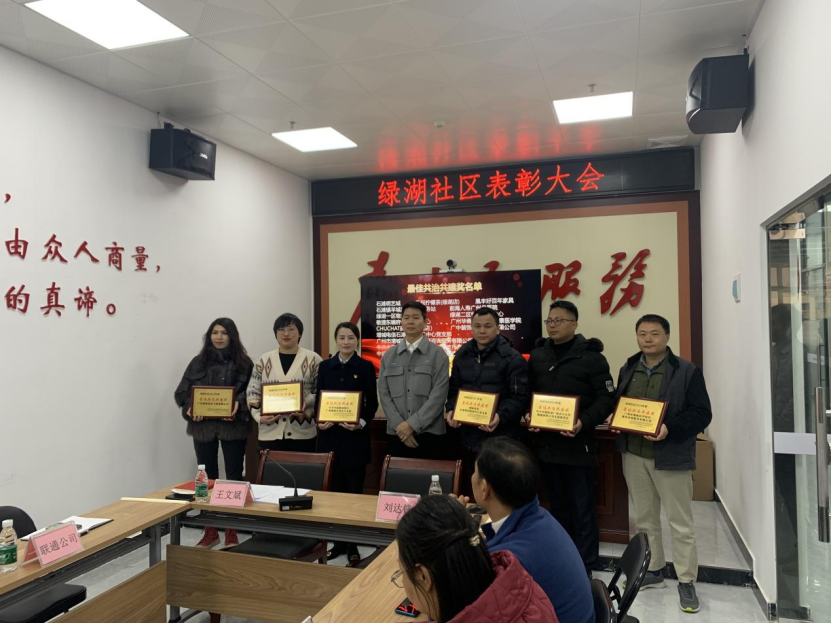 与会人员共同观看了绿湖社区2023年度志愿活动回顾视频后,绿湖社区党支部向参会人员颁发了绿湖社区最美志愿者、最美奉献者和最佳共治共建奖三项大奖。